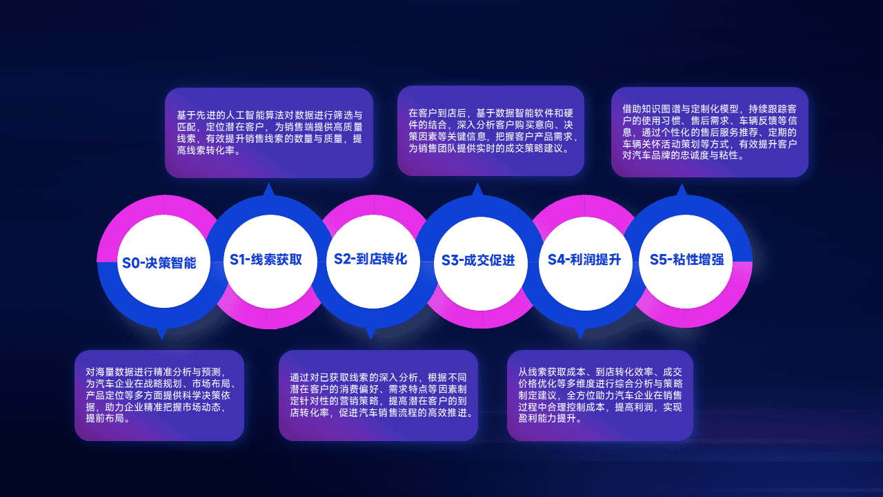 通过拓宽潜在客户来源、、优化线索分配并提高到店转化率,,,以增强销售效率。。同时,,,利用线索数据不断优化分析模型,,有效提升转化率,,扩大营销影响力。。。。